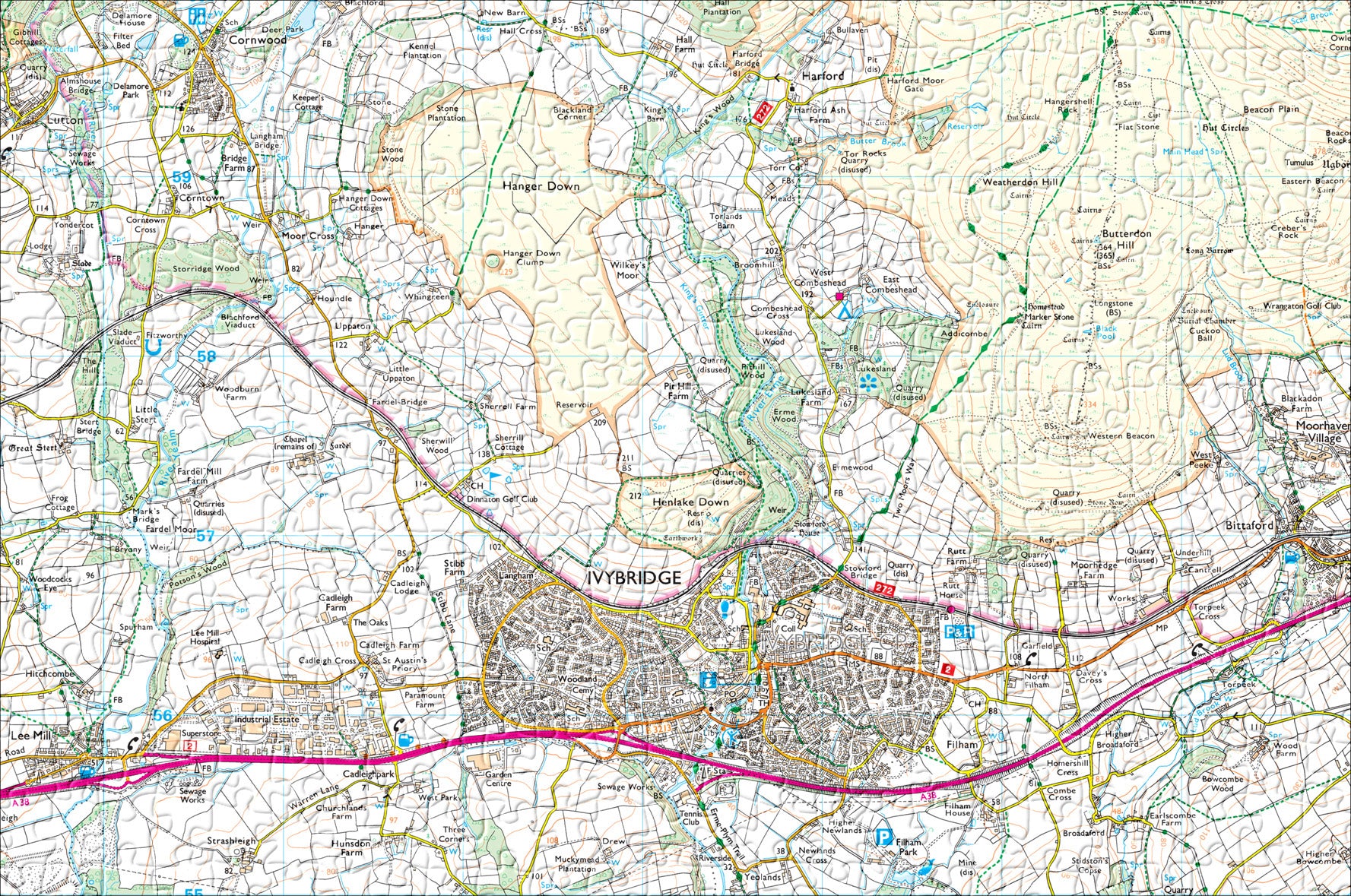 This 408-piece jigsaw puzzle covers the area around Ivybridge. Local map puzzles based on Ordnance Survey Data. Finished Size: 47 x 31cm (18 1/2 x 12 1/4)